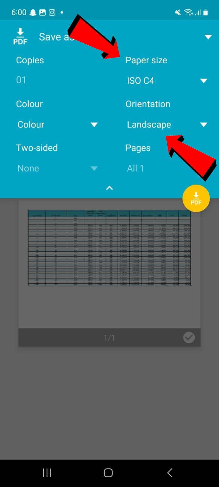 Step 6: If you want to set a bigger print area in Google Sheets on Android, modify the page settings from Portrait to Landscape or adjust the paper size accordingly.