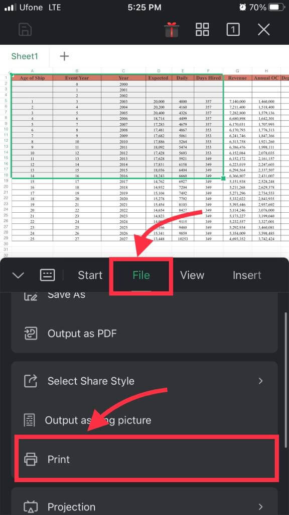 Step 6: Go to the "File" tab, scroll down, and select the "Print" option.