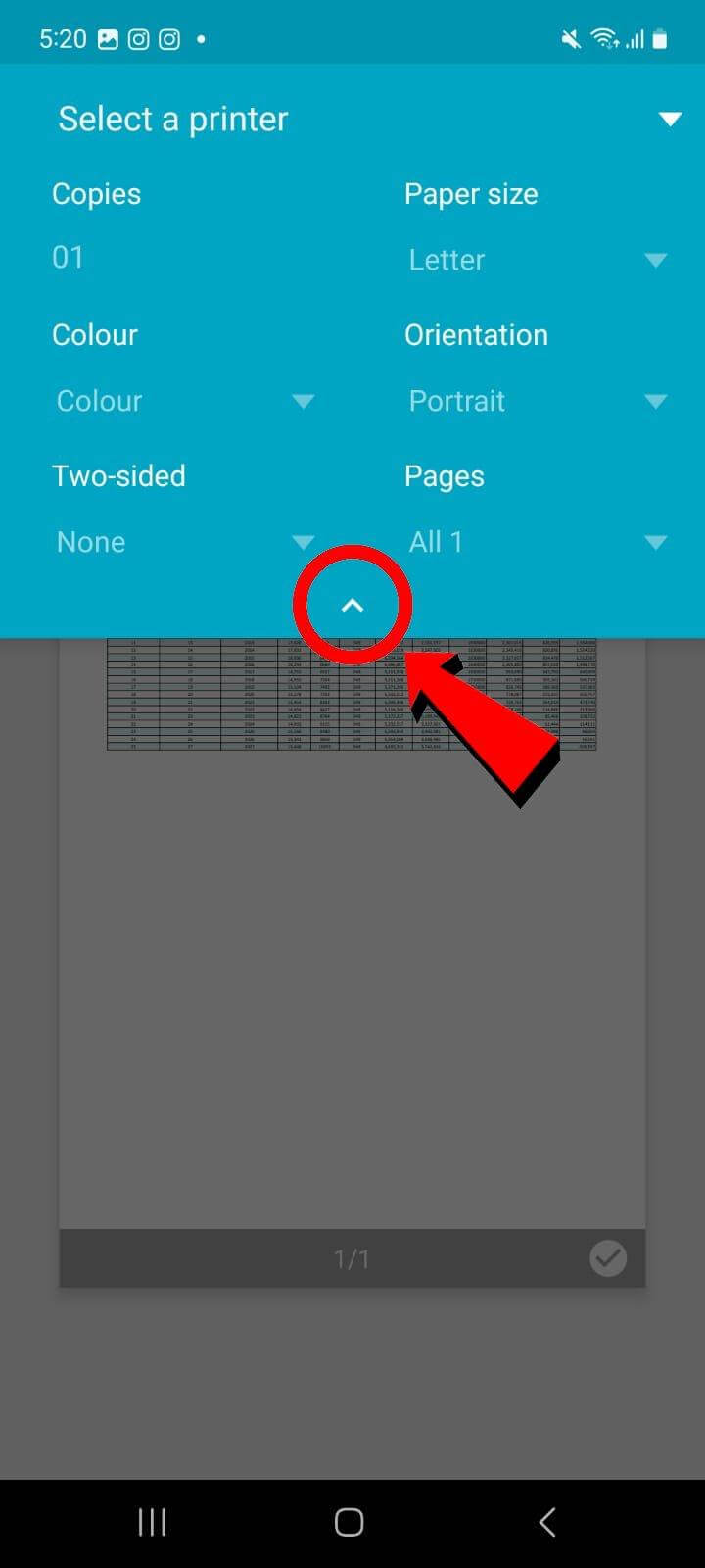 Step 5: Click on the arrow to open the dropdown menu and configure your printing settings before initiating the printing process.