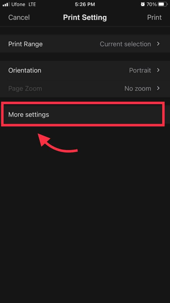 Step 9: You're all set. If users want to explore additional printing options on WPS Office Mobile, they can click on "More Settings".
