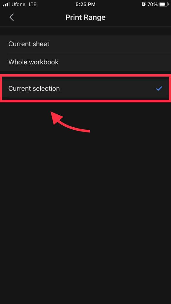Step 8: To print the selected cells from step 4, choose "Current Selection".