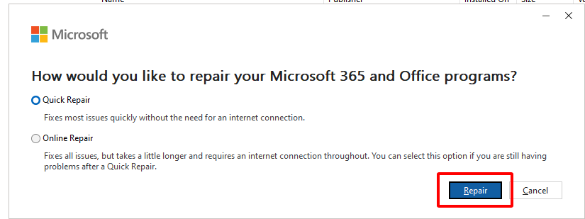 Step 3: Choose the "Repair" option and follow the on-screen instructions.