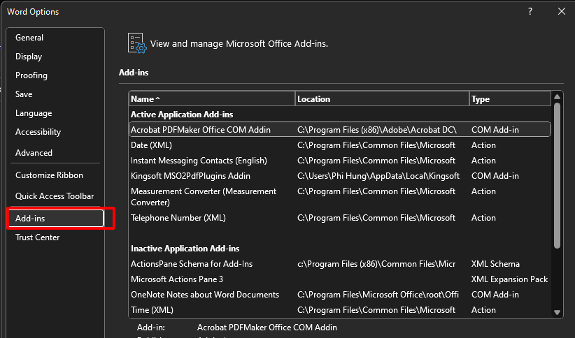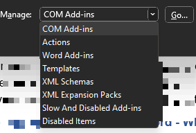 Step 3: At the bottom of the window, select "COM Add-ins" from the dropdown and click "Go."