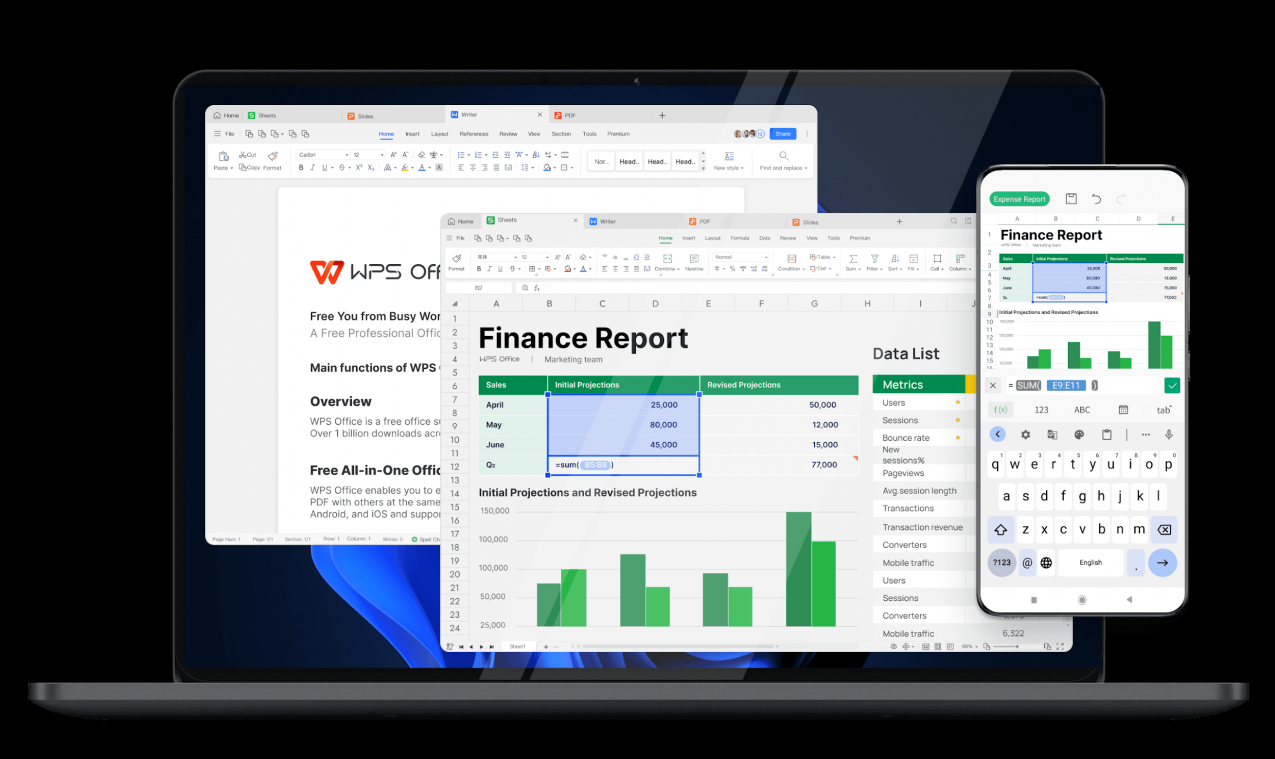 Excel Formulas and Spreadsheet: WPS Office includes a robust spreadsheet application that mirrors Excel's capabilities. You can effortlessly use formulas and perform data analysis tasks with precision.
