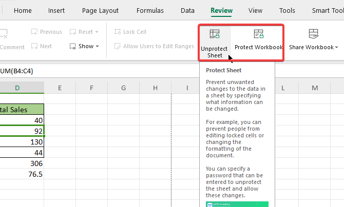 After trying all the ways mentioned above, but still unable to show all the formulas in the excel. Maybe your spreadsheet is in protected status. Excel has the feature for people to use on protecting the sheet or the whole workbook. This is to avoid accidentally pressing the wrong button and causing the previous work to be wasted. This may also cause you not to be able to show the formulas.