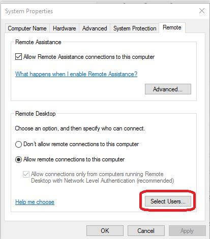 Under the Remote Desktop section, select Allow remote connections to this computer.