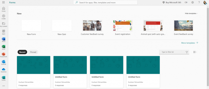 4. Once you're logged in, you will be directed to the Microsoft Forms homepage where you can start creating your form.