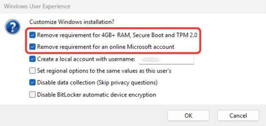 Verwijder de vereiste voor 4 GB + RAM, Secure Boot en TPM 2.0