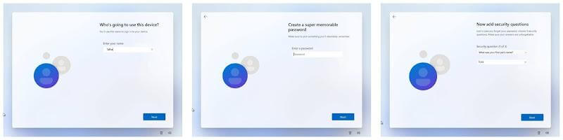 Stap 7: U wordt nu doorgestuurd naar het scherm voor het instellen van het lokale account. Voer uw gewenste gebruikersnaam en wachtwoord in en kies en beantwoord vervolgens drie beveiligingsvragen om uw installatieproces te voltooien.