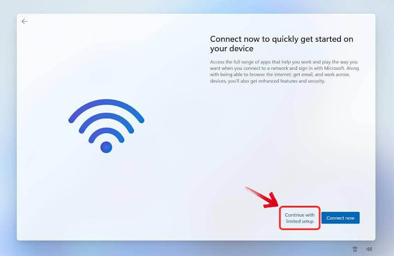 Stap 7: Selecteer "Doorgaan met beperkte configuratie" om door te gaan met het aanmaken van een lokaal account.
