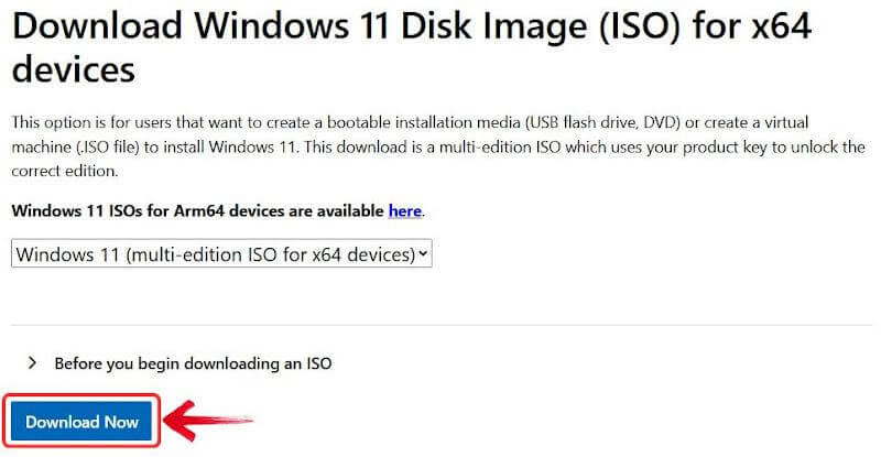 Stap 3: Zorg er nu voor dat je ook het Windows 11 ISO-bestand hebt gedownload, dat met Rufus zal worden gebruikt om de installatiemedia te maken.