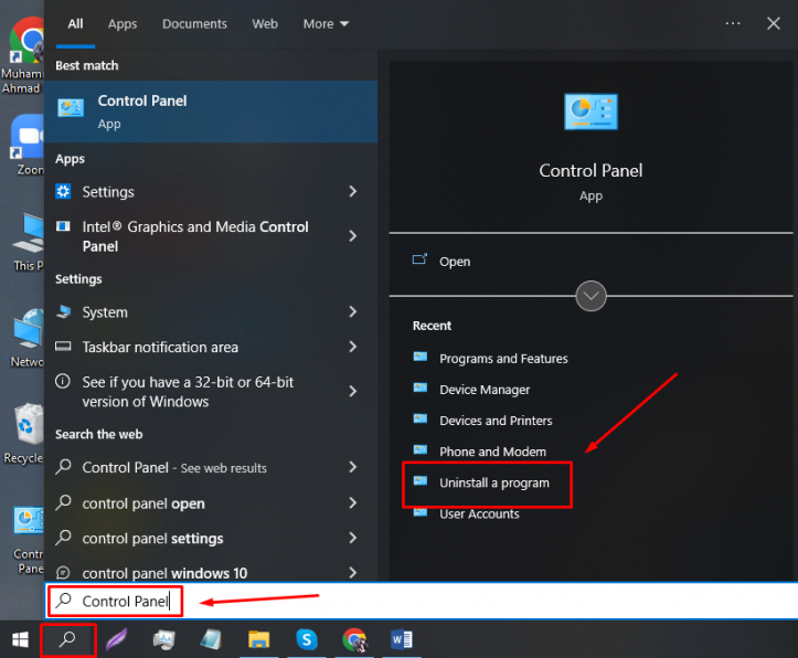Search for “Control Panel” in the search option of Windows.
