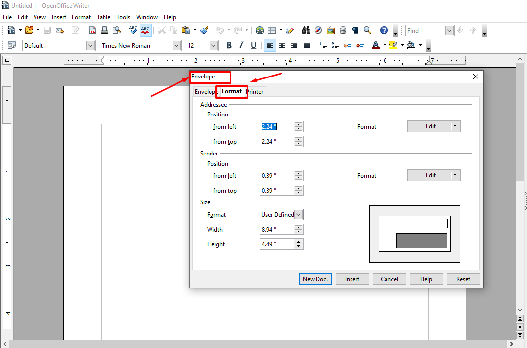 You will see a new Envelope box inside OpenOffice.