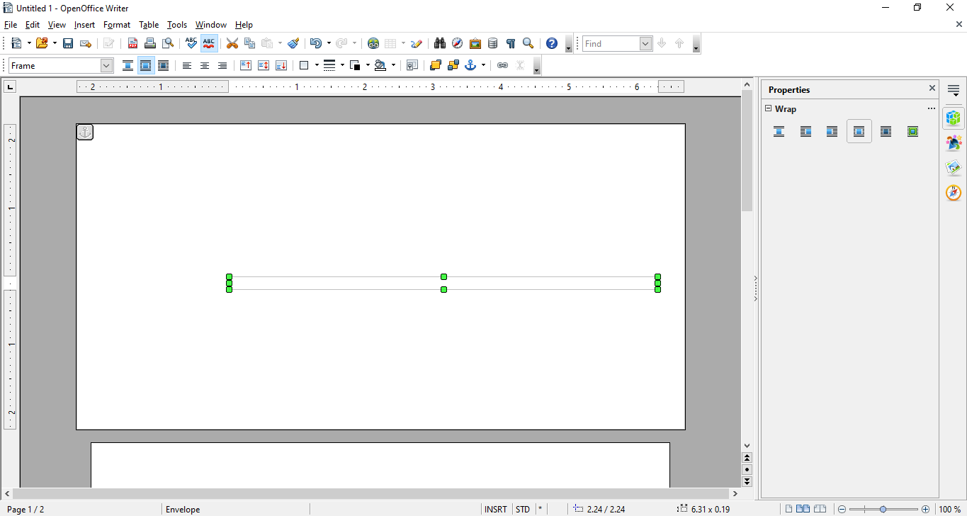 Drag the cursor shown inside OpenOffice and check the “Properties” box to make changes to the text box.