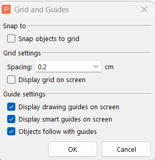 2. Then, click on the "Grid and Guides" button and check the "Display drawing guides on screen," "Display smart guides on screen," and "Objects follow with guides" options in the Guide settings area.