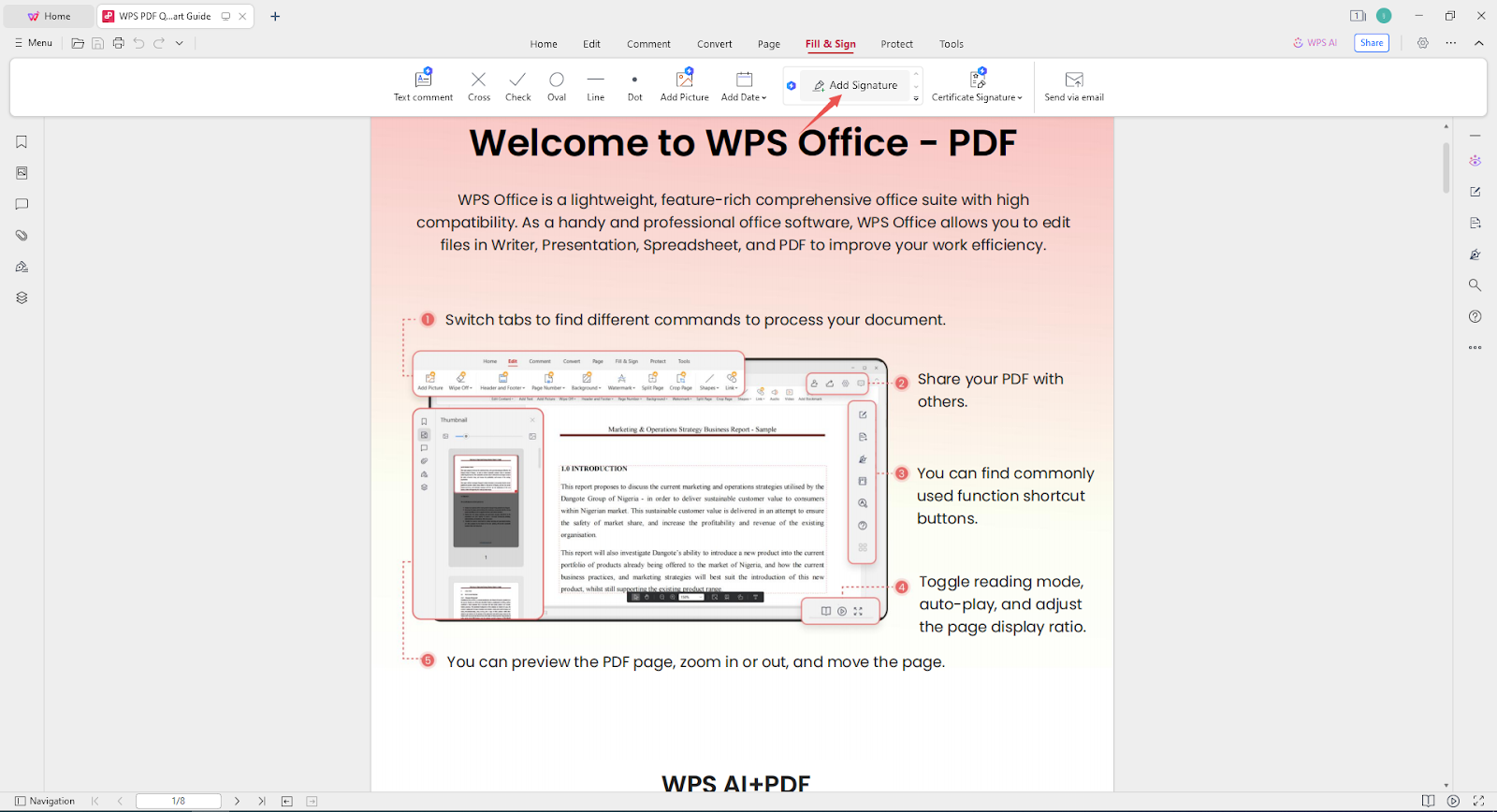 În primul rând, selectarea unui program de editare PDF fiabil, cum ar fi WPS Office, cu suport pentru semnături, este crucială. Acest lucru asigură securitatea și autenticitatea documentului dvs.