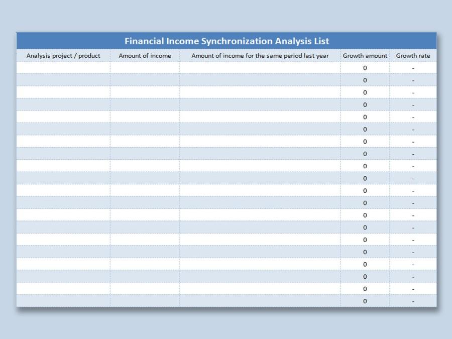 The Financial Income Synchronization Analysis List template is a great tool for comparing your current income with last year’s figures. It helps you track growth by showing the income amount for the same period last year, along with the growth amount and rate.