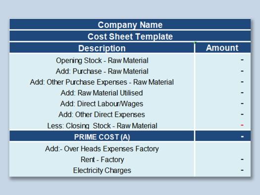 The Useful Cost Sheet Form helps track production costs, including raw materials, labor, and overheads, making it easy to calculate your prime cost and stay on budget.