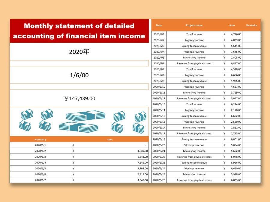 The Monthly Statement of Detailed Accounting of Financial Item Income tracks daily income by project, helping you easily monitor and manage your finances throughout the month.