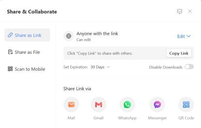 Step 8: You can also share the link to your document with others to enable collaborative work in case they want to make their own changes as well.
