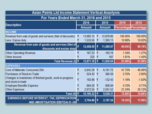 The Income Statement Vertical Analysis Template helps businesses analyze their income and expenses by presenting financial data as a percentage of total revenue. This makes it easier to compare the proportions of various revenue and expense categories over different periods.