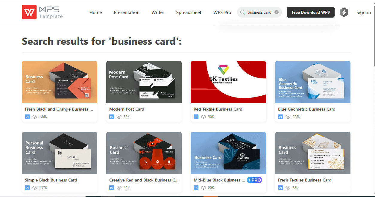 Attractive Design: WPS templates offer visually appealing designs for standout business cards.
