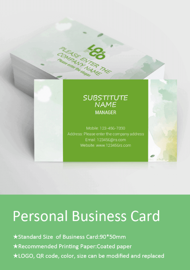 If you're looking for a fresh and artistic design, this watercolor business card template is perfect. It combines a vibrant green color palette with a modern layout, making it suitable for various professions.