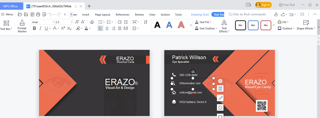 Professional Designs: WPS offers free PDF business card templates with attractive designs that make a lasting impression and convey professionalism.