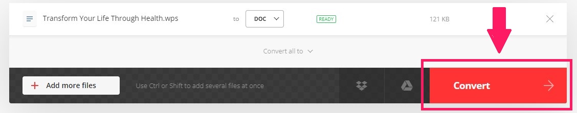 Step 4: Initiate the conversion by clicking the "Convert" button, allowing the online converter to seamlessly transition your WPS file into a DOC format.