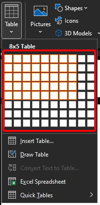 To insert rows or columns in your table, follow these steps: